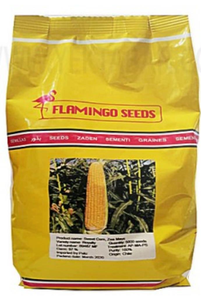 بذر ذرت رویال تی محصول شرکت فلامینگو سید استرالیا از بهترین و پر بارترین بذر ذرت شیرین میباشد. بذر ذرت رویال تی رقمی شیرین بوده و در بسته بندی پاکت 5 هزار عددی به فروش میرسد.